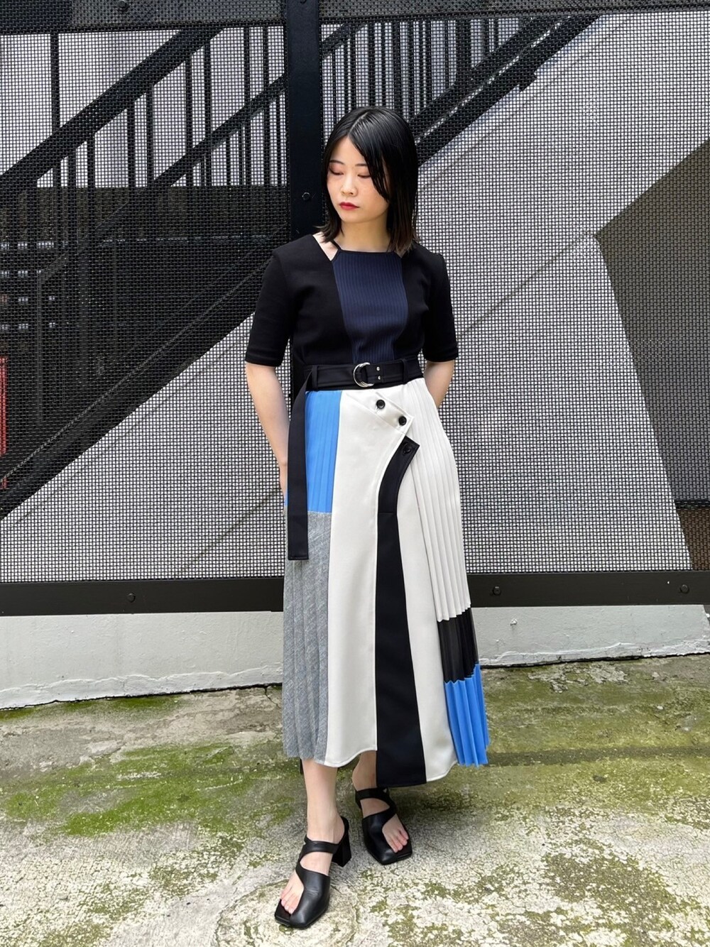UNITED TOKYO STAFF(UNITED TOKYO)のTシャツ/カットソー「スクエアカットアウトリブカットソー|細見え/ウォッシャブル/半袖/春服」を使ったコーディネート