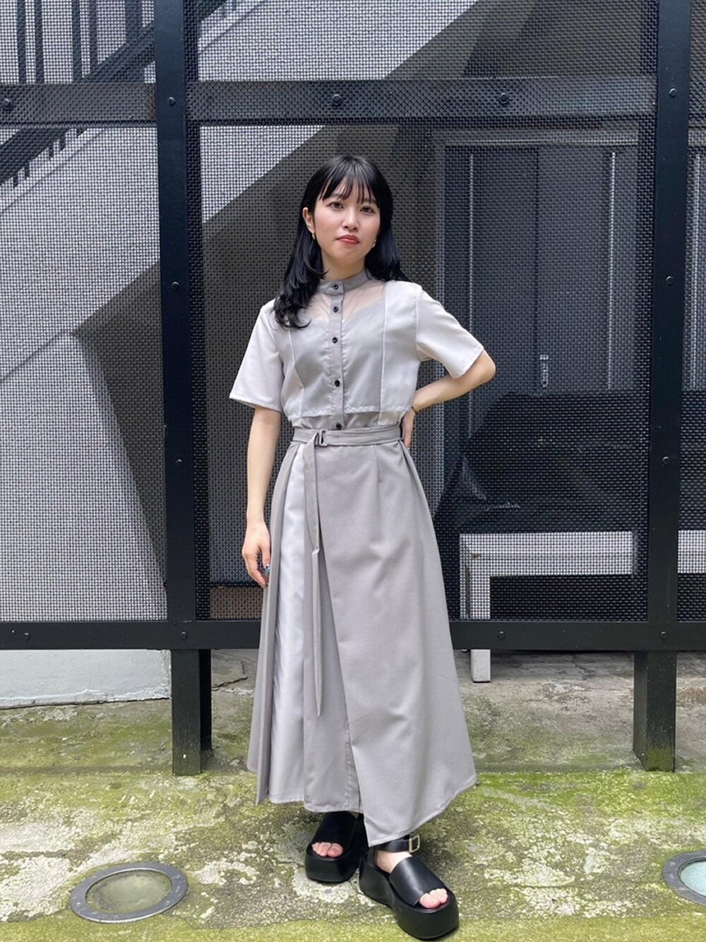 UNITED TOKYO STAFF(UNITED TOKYO)のシャツワンピース「【残りわずか!】シアードリームブロッキングワンピース|細見え/接触冷感/速乾性/防シワ/半袖/秋服」を使ったコーディネート
