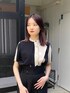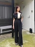 バイカラーでモードな印象のブラウスです! パンツはヒップを拾わないので、スタイルアップ効果抜群です。