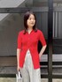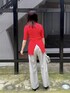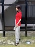 赤にグレーを合わせて、きれいめに合わせました! パンツはプリーツが脚長効果抜群です!
