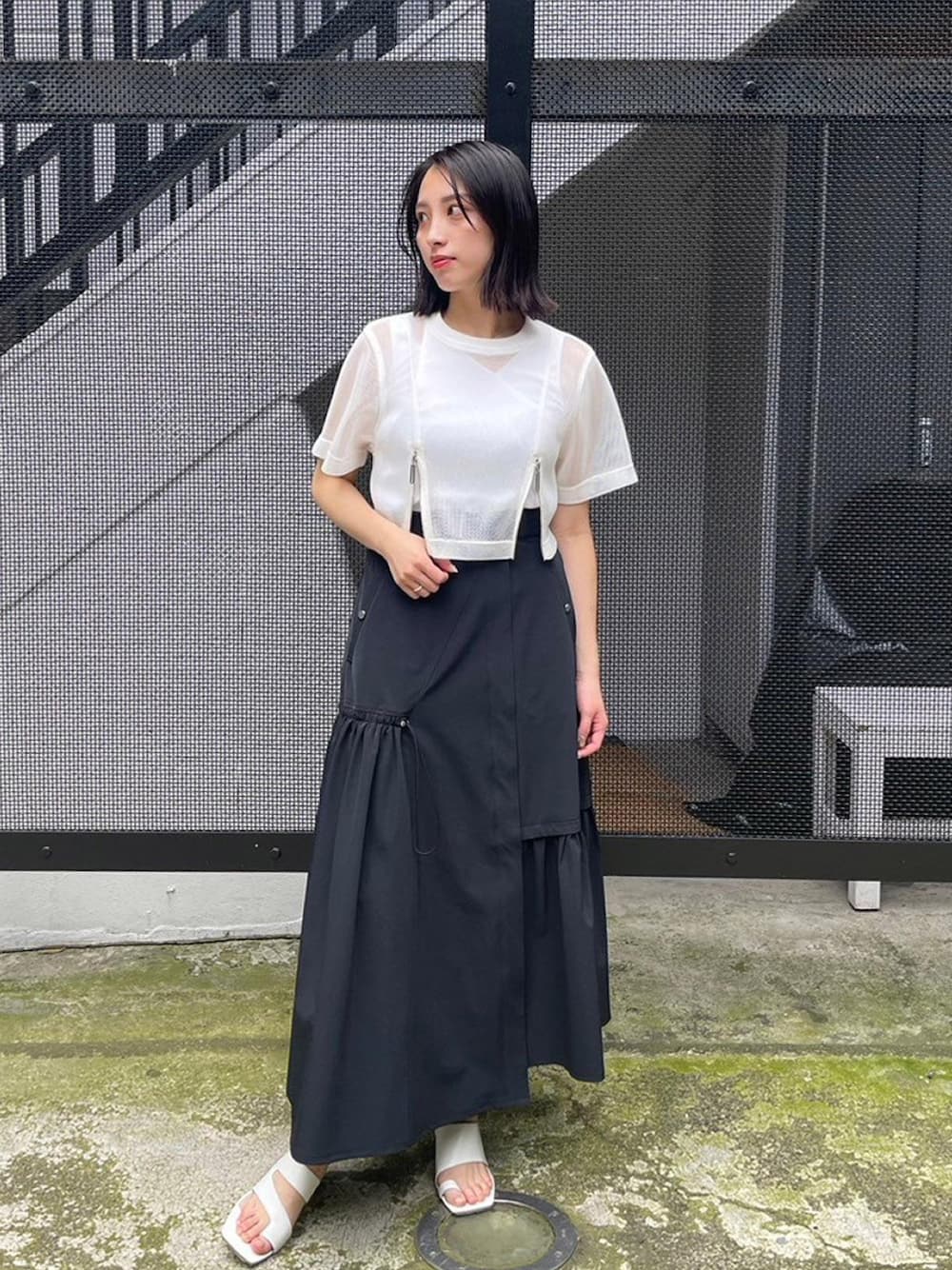 白のメッシュがトレンド感のあるコーデです!