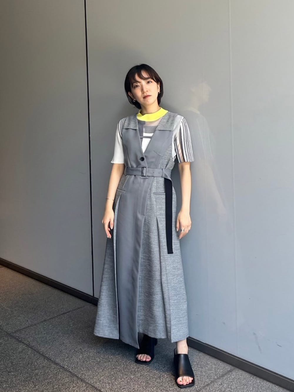 UNITED TOKYO STAFF(UNITED TOKYO)のジャンパースカート「ゲレインテクスチャーコンビワンピース|ウォッシャブル/夏服」を使ったコーディネート