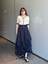 UNITED TOKYO STAFF(UNITED TOKYO)のニット/セーター「シアーカラーラインリブニット|細見え/ウォッシャブル/シアートップス/半袖」を使ったコーディネート