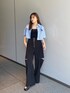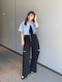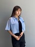 夏は重くなりがちなブラックにブルーのシャツを合わせることで、爽やかなコーデにしました!