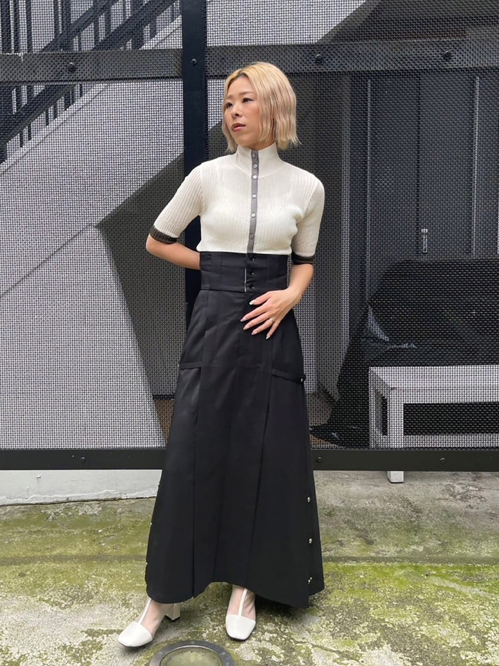 UNITED TOKYO STAFF(UNITED TOKYO)のニット/セーター「シアーカラーラインリブニット|細見え/ウォッシャブル/シアートップス/半袖/春服」を使ったコーディネート