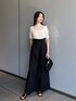 程よい透け感のニットと脚長効果抜群のパンツでオンオフ兼用コーデ○