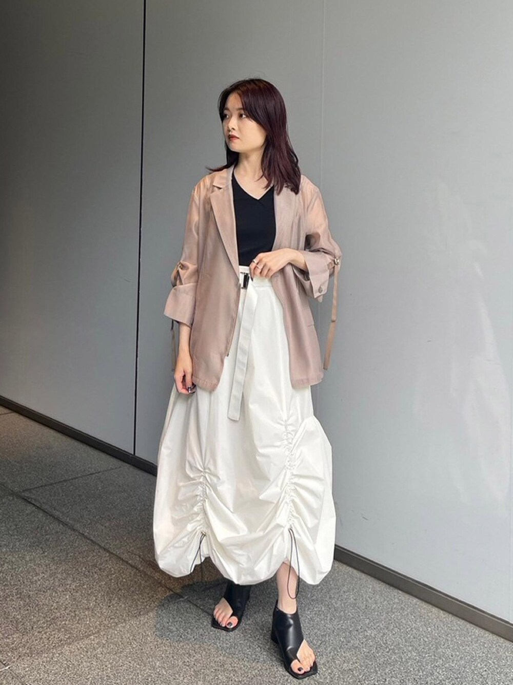 明るい色に相性がいいベージュのシアージャケット!さらっと羽織れるのがお気に入りです!