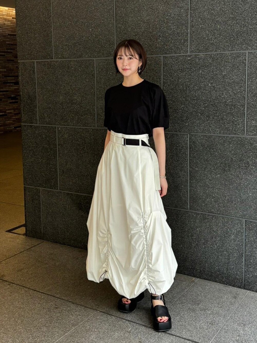 カジュアルになりがちなTシャツをモノトーンで大人っぽくまとめたコーデです。