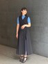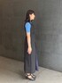 ジャンパースカートのネイビーと、インナーのブルーをリンクさせたコーデです!
