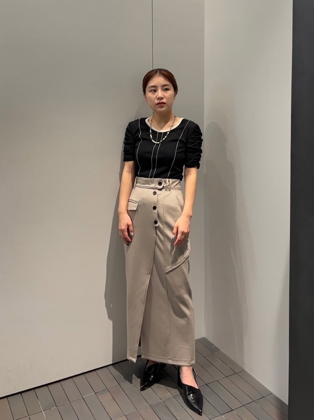 カジュアルなカットソーを、ペンシルスカートできれいめに合わせました!
