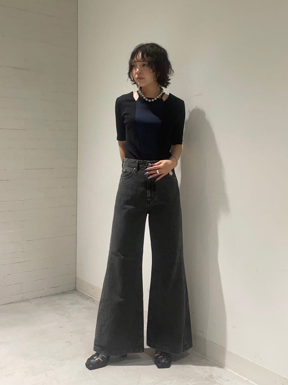 UNITED TOKYO STAFF(UNITED TOKYO)のTシャツ/カットソー「スクエアカットアウトリブカットソー|細見え/ウォッシャブル/半袖/春服」を使ったコーディネート