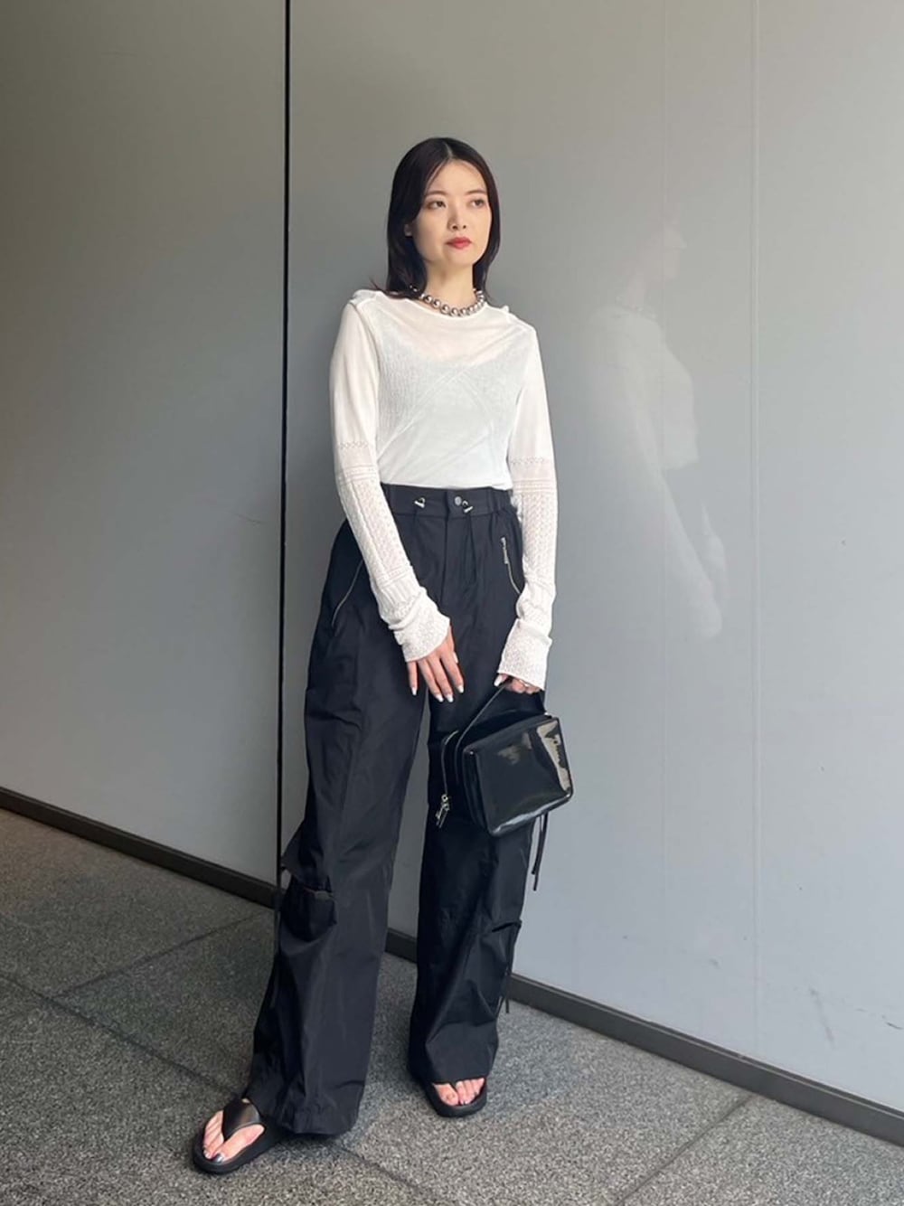 このニットは透け感がありとっても柔らかいので晩夏にもおすすめなアイテムです!
