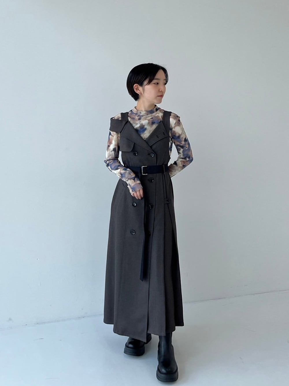 UNITED TOKYO STAFF(UNITED TOKYO)のジャンパースカート「トレンチラべルジャンパースカート|ウォッシャブル/防シワ」を使ったコーディネート