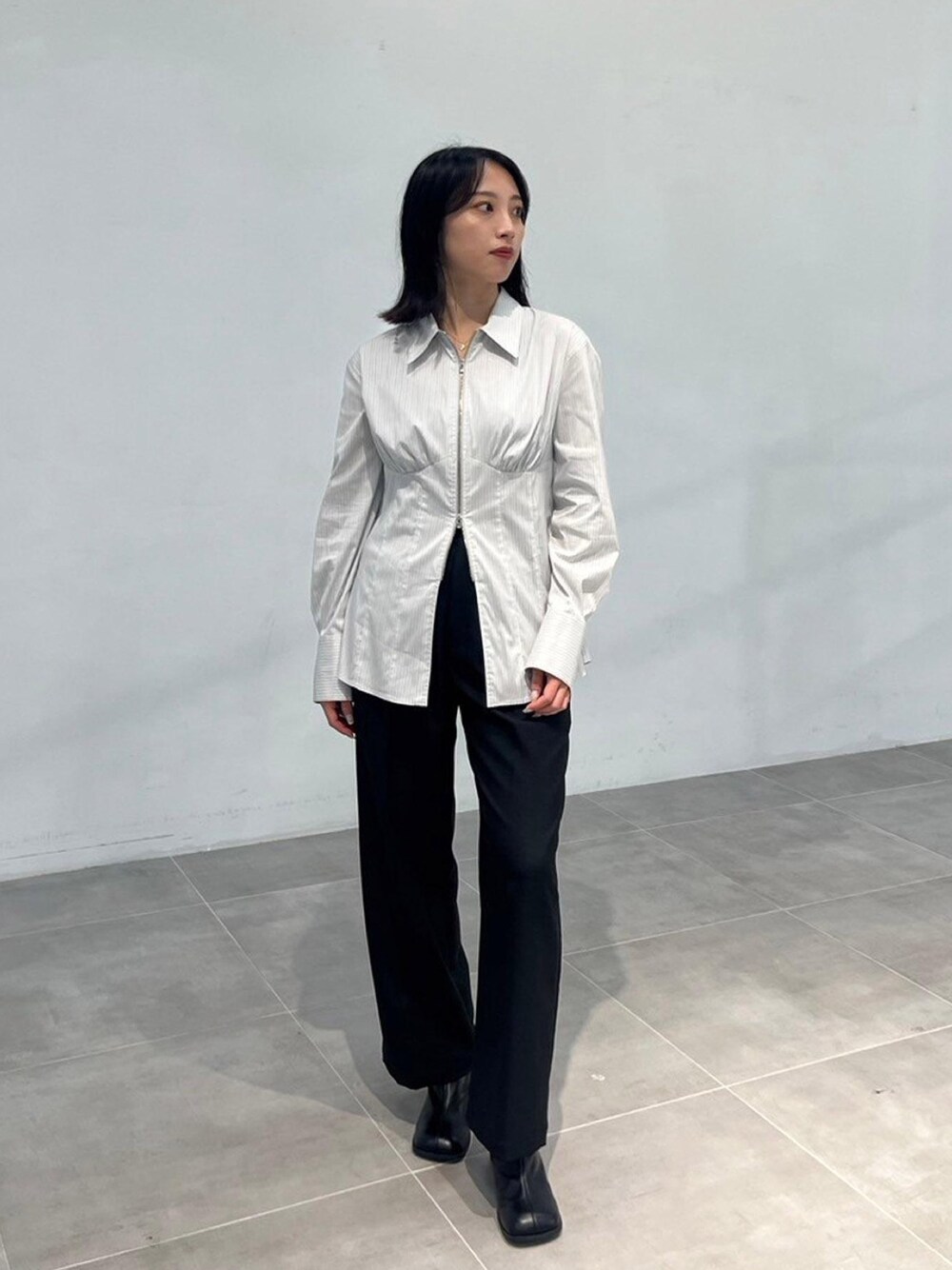 UNITED TOKYO STAFF(UNITED TOKYO)のシャツ/ブラウス「ジップアップスリムシャツ-ウォッシャブル-」を使ったコーディネート
