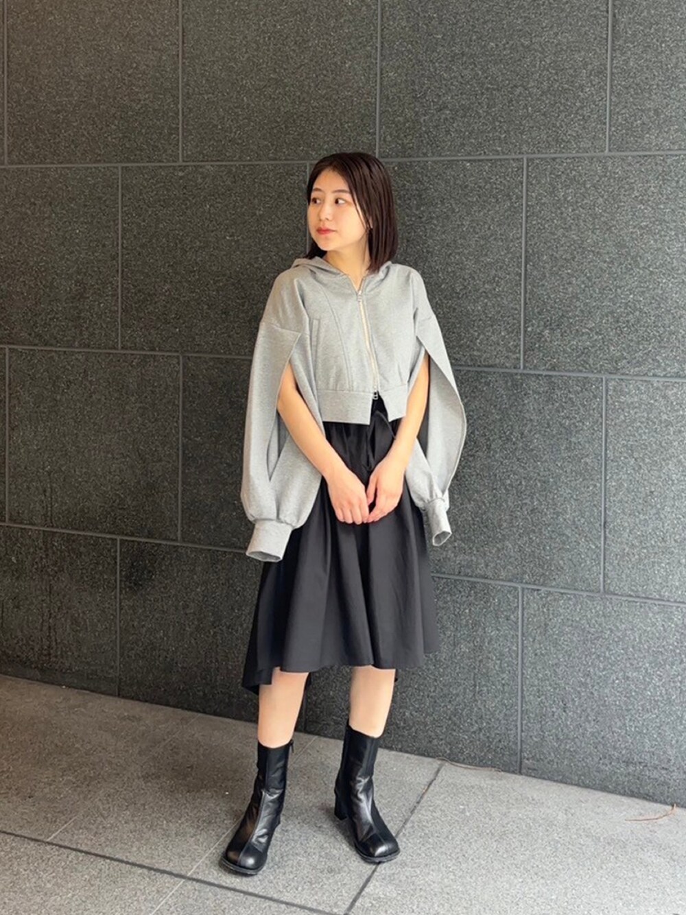 パーカーをモードに着てみました!ショート丈で小柄さんにもおすすめなアイテムです!
