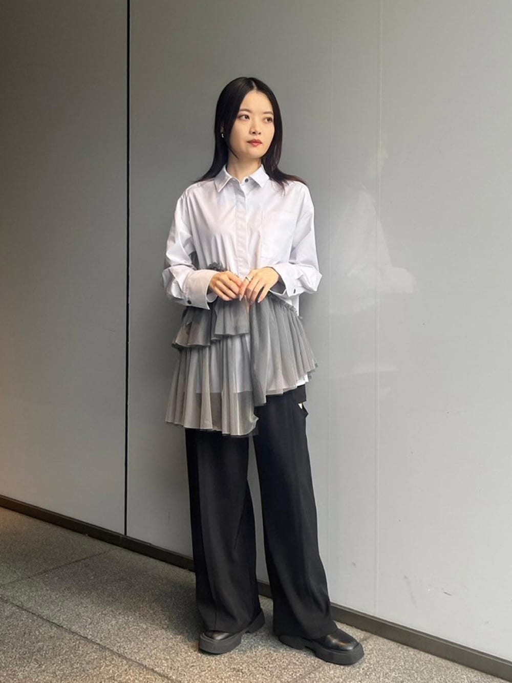 UNITED TOKYO STAFF(UNITED TOKYO)のシャツ/ブラウス「【残りわずか!】シャンブレーチュールコンビシャツ|防シワ/秋服/冬服」を使ったコーディネート