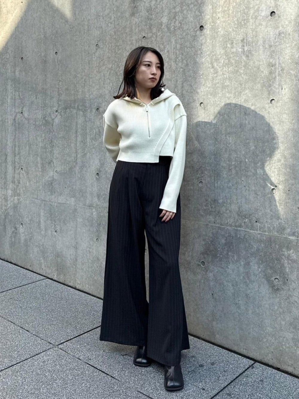 フーディーもニットならカジュアルになりすぎなくてオススメです◯