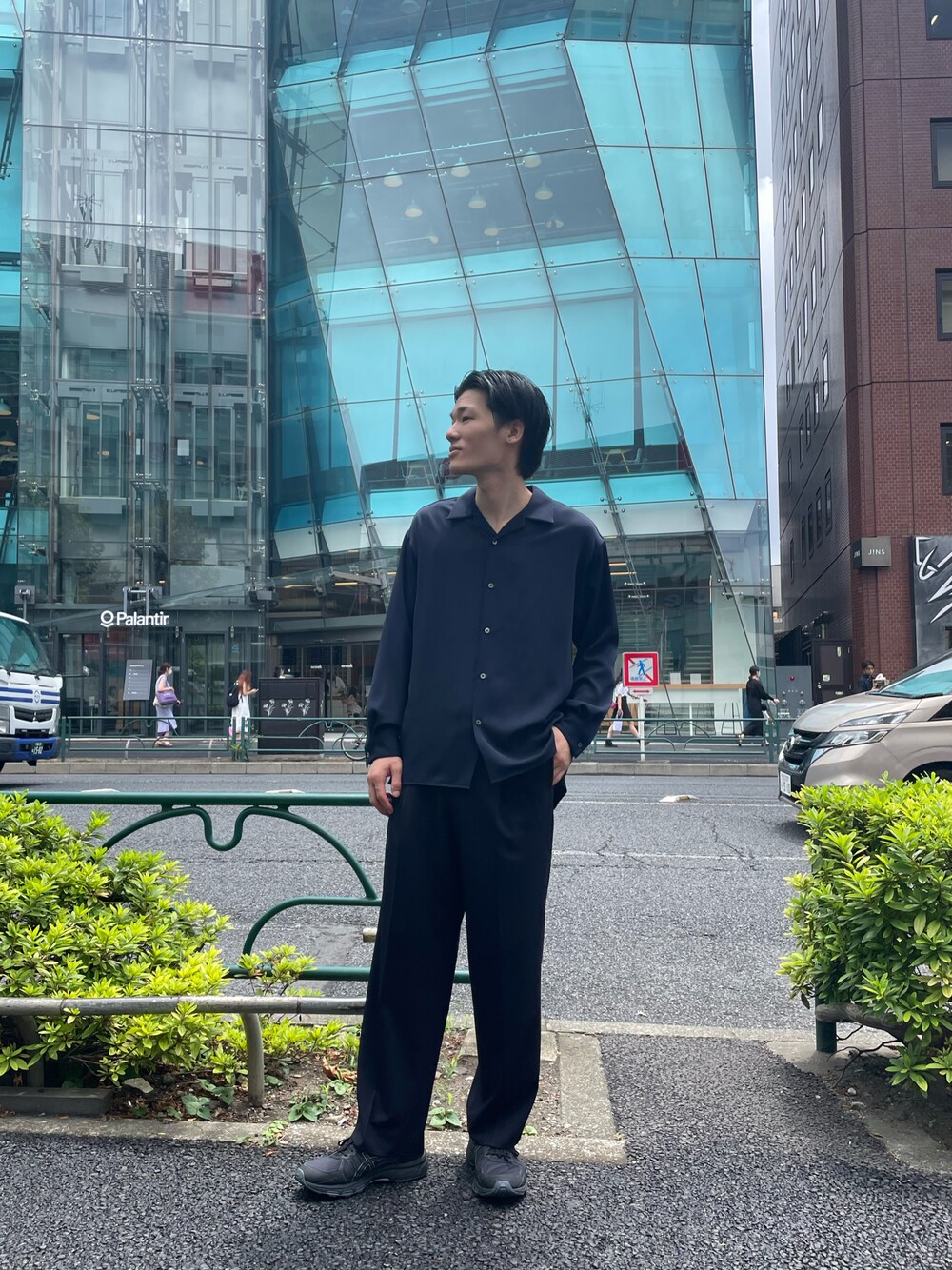 オールブラックでモードなスタイリングしてみました。 シャツの着心地、テロっと感が凄くいい👍