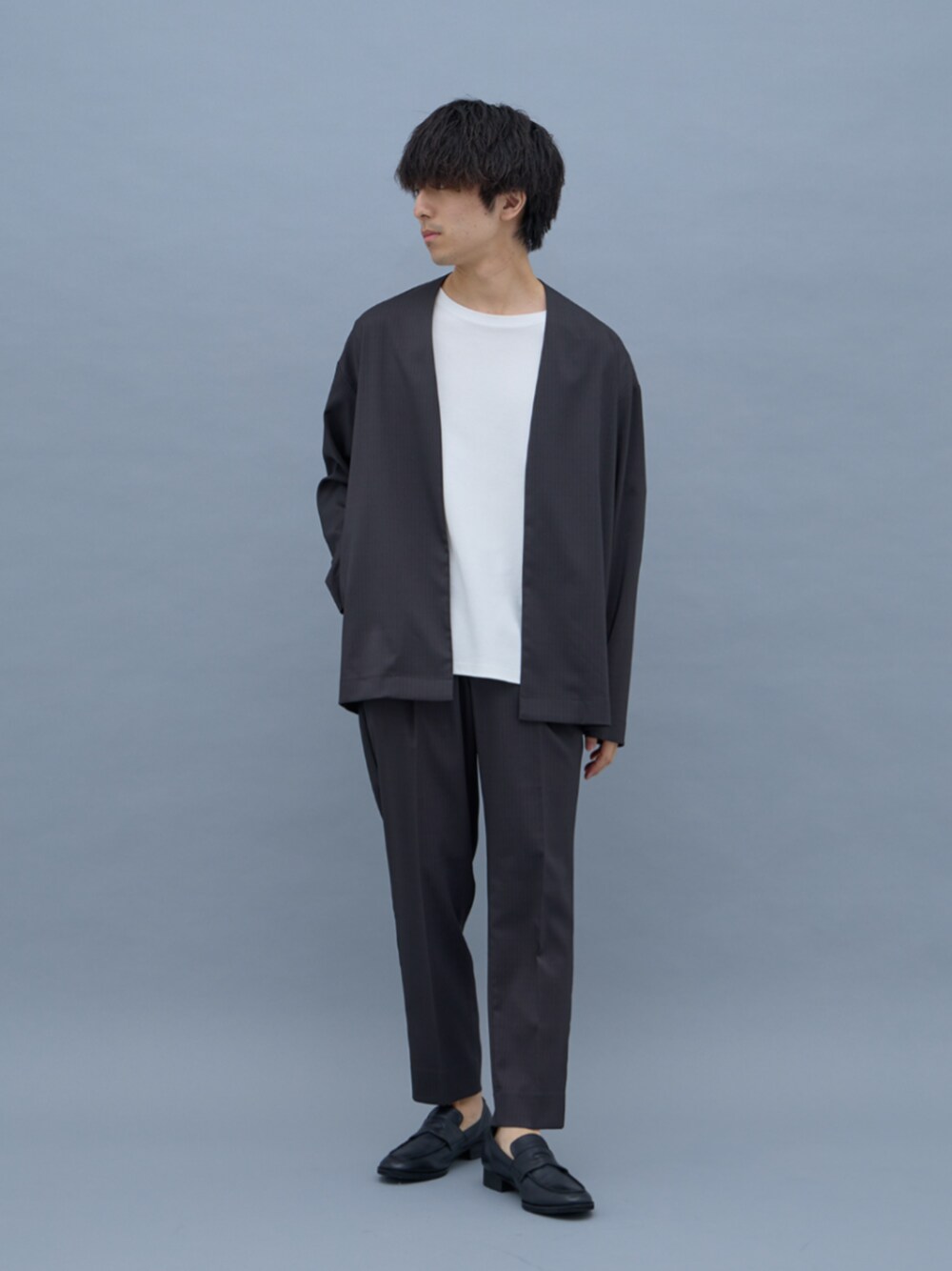 UNITED TOKYO MENS(UNITED TOKYO)のノーカラージャケット「Dry Air カーディガン|セットアップ着用可能」を使ったコーディネート