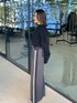 ショート丈のニットはハイウエストと合わせて王道コーデ。サイドラインデザインパンツはラインがカジュアルな印象ですが形はスッキリしているためスポーティーになりすぎません。