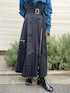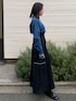 スウェットとスカートの素材感でカジュアルにまとめつつ、首、肘、手から少しずつ見える柄でオシャレ感UP!