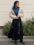 全体的にビッグシルエットでカジュアルながらも フレアスカートとギャザーが入ったMA-1でレディースならではの組み合わせ。