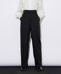 合わせ方によっては派手見えするチュールも、シンプルなストレートパンツと合わせることで普段使いに。