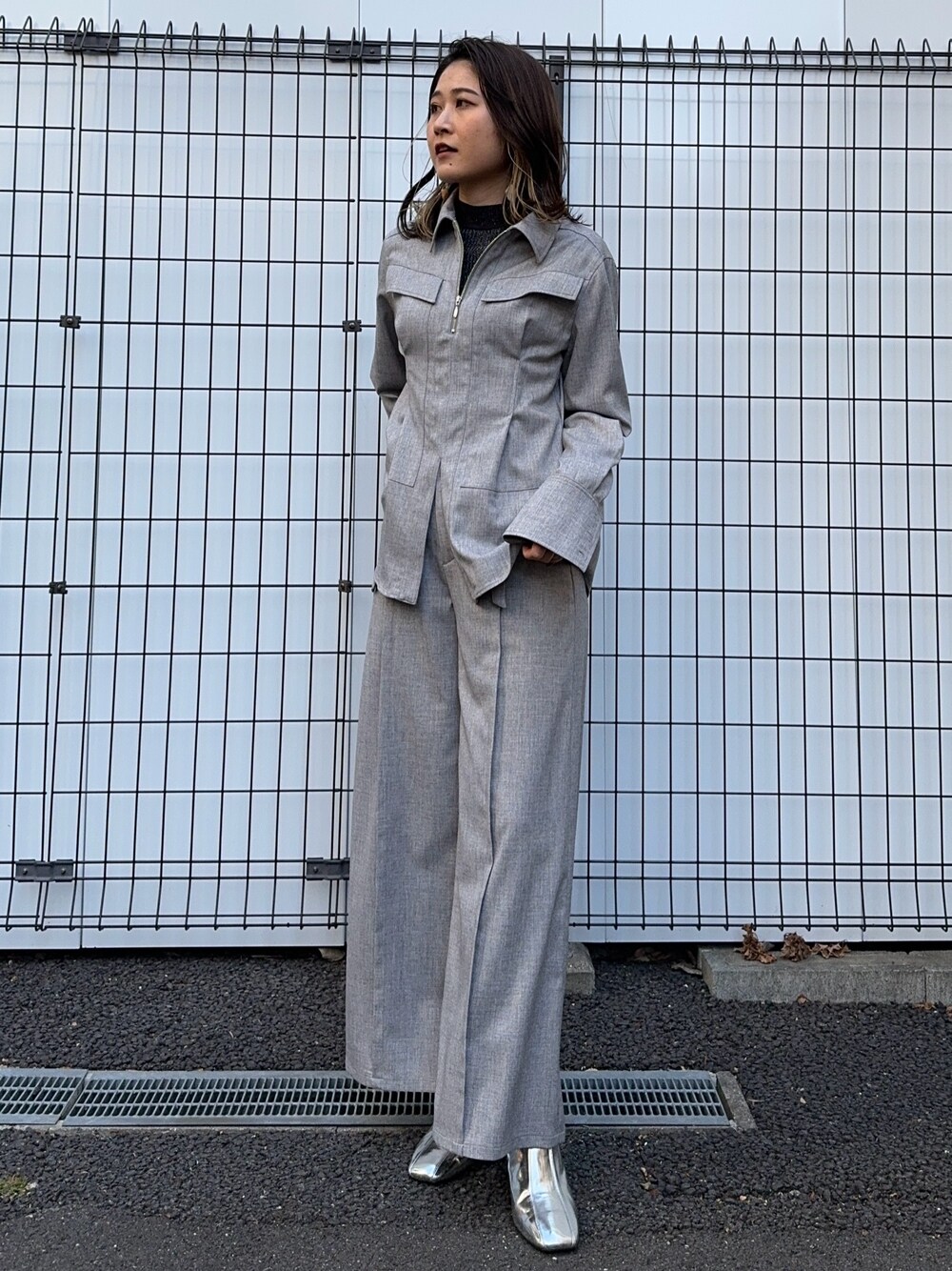 軽い素材のセットアップは、 トップスがウエストマークされているので ゆるめでもスタイルアップ効果大です◎
