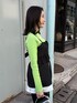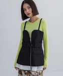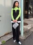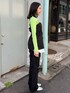 シルバー、蛍光カラー、ビスチェの3点で色味が春らしい個性派コーデ。