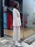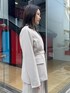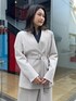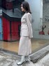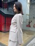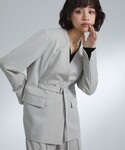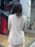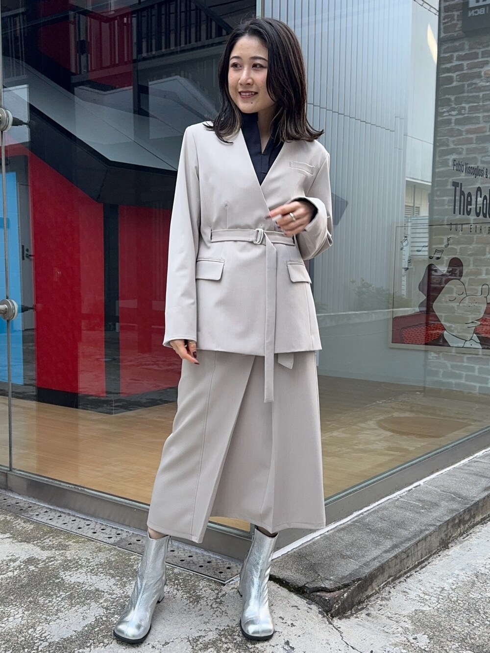 綺麗めセットアップのジャケットはベルトでくびれが作れるので 脹脛までのスカートでもスタイルを良く見せてくれます。