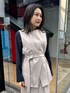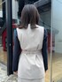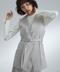 軽い生地のベストは、首の内側にボタンがついており襟は2wayで使うことができます。 セットアップのジャケットを羽織るレイヤードスタイルでオシャレ度UP。