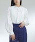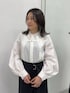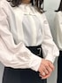 袖にボリュームのあるブラウスは、すっきりシルエットのスカートと合わせると全体バランス抜群に。 ブラウスの袖部分はハリがあります。