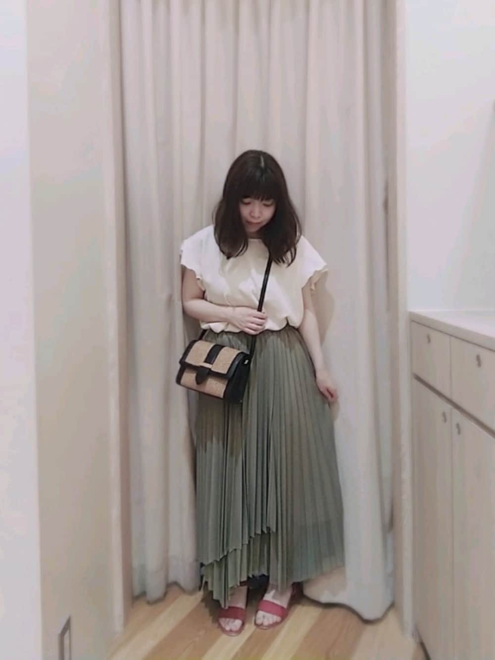 夏コーデその②🌺🌴 トップスはバックのリボンと袖のフレアがポイント🌼 さらっとした素材感で今季にぴったりです✨ スカートは細やかなプリーツで歩くたびにふわっと揺れて、女性らしい印象を演出してくれます。 ウエストはゴム仕様になっており穿き心地もGOOD! シックなカラーなのでいろんなコーデに合わせやすいですよ🌼 ・バックリボンフレア袖ブラウス 税込¥3,190(1710192/Te chichi TERRASSE) ・イレヘムプリーツスカート 税込¥4,290(1505238/Te chichi TERRASSE) ・ミドルヒールサンダル 税込¥6,499(1815000/ORiental TRaffic) ・雑材スクエアショルダー 税込¥4,950(1814838/Te chichi TERRASSE)