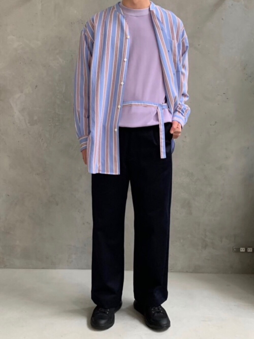 トップスは同色のアソートでシンプルに。 シャツのアジャスターをさりげなくアレンジにつかっています。全体的にリラックスしたバランスが旬で個人的に好み🤤