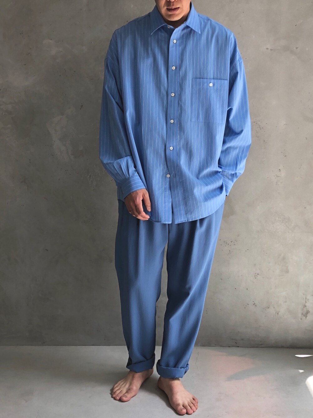 . ワントーン落ち着きます🤤 シンプルですがリラックス感や色や素材の風合いに個性や涼感が得られます。 引き続き旬のオーバーシルエットですが、ネックやカフスのタイトさが大人らしい雰囲気を醸し出します。