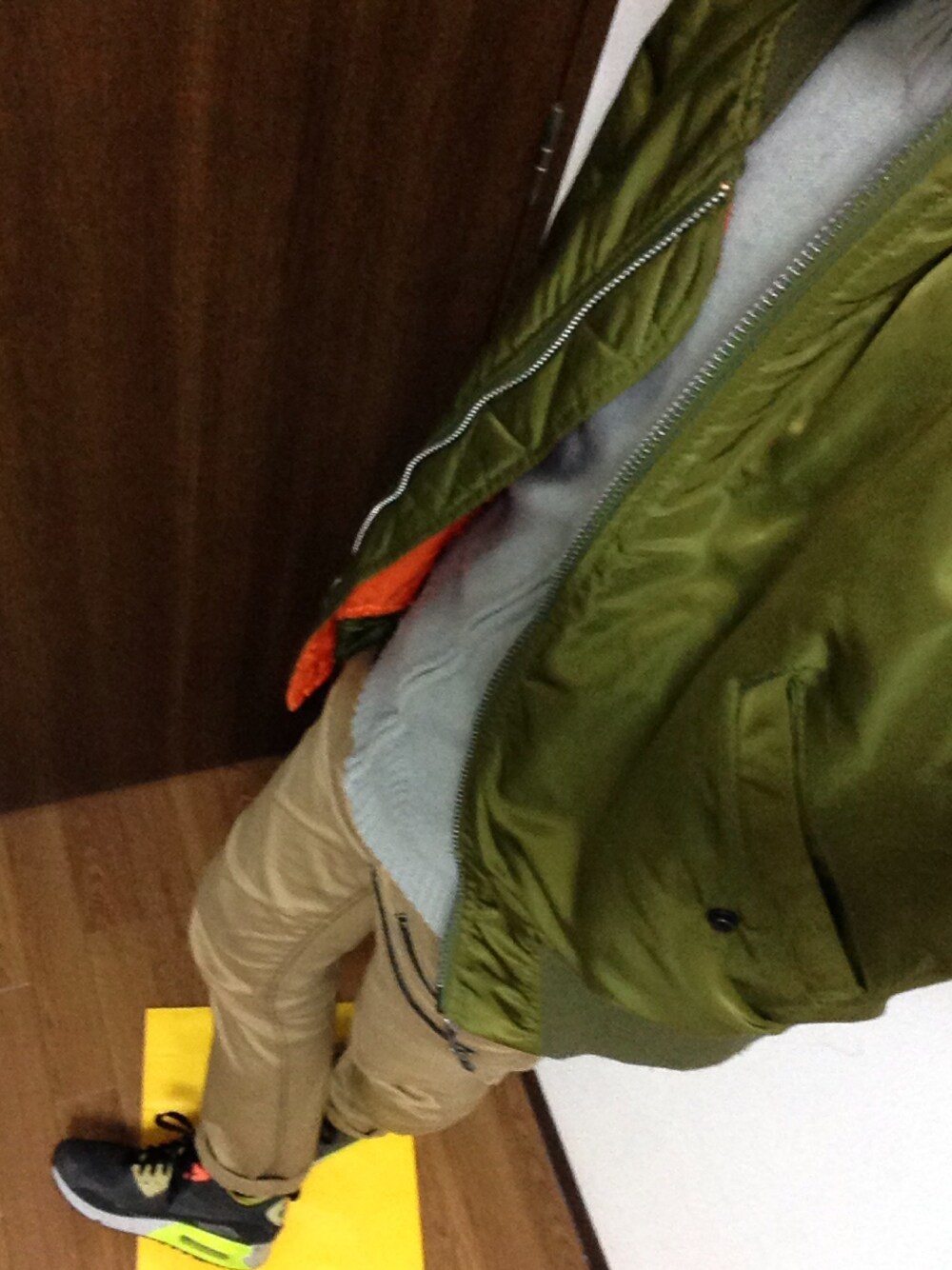どうもです(e_e) 今日は久々にMA-1を使ってみました。 MA-1、いいですよね…好きです。 僕のは父から借りているものなんですけど、これが結構昔に流行ったやつみたいでして、トムクルーズが日本で大人気になった頃のものらしいです。 なので、サイズ感が今のと違ってて太いんですよね。最近のはスタイリッシュと言うか…そういう違いがよく分かって面白いですね服は^_^ で、中にニットを合わせて男らしい×優しめのバランスとってみました(よくあるやつ) あと、今回のちょっとしたポイントは、MA-1の色とスニーカーの色を同系色にしてみたことです。いいかなぁ、と思って。笑 もしよろしければ、いいねとかセーブとかして下さるとありがたいです。 フォローされたら喜んで部屋を駆け巡りながらフォロバしますので…。