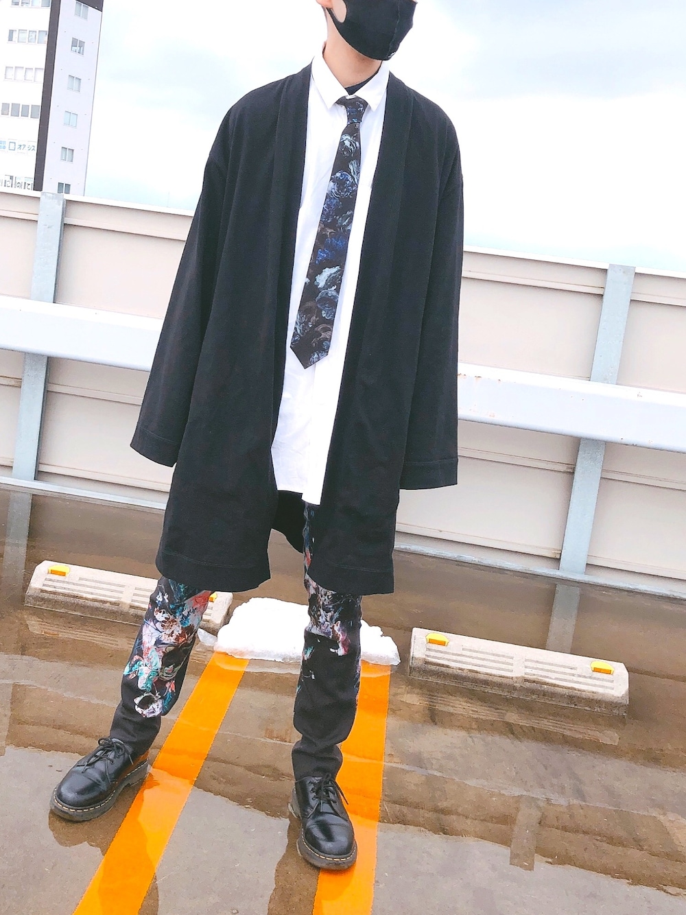 屋上にて スラックスとキモノカーディガンを合わせたかったのでこんな感じです!