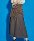 ブラウンとベージュの淡めな色合わせで、春らしいコーデに!スカートは大きなスリットで広がってくれるので、形も綺麗です◎ オンオフで使えるデザインで、トップスも選ばず使えます!