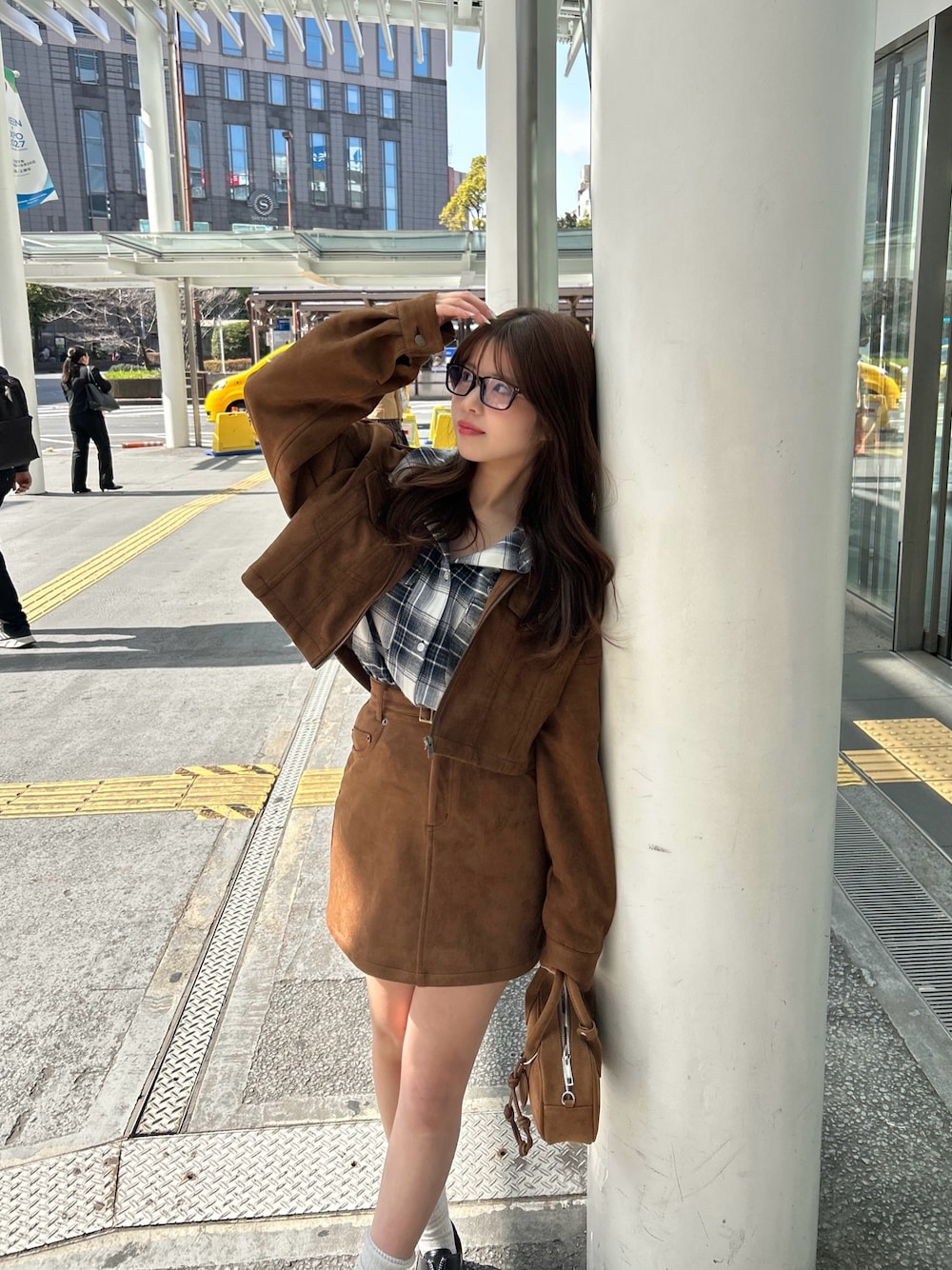 【アウター】 ショート丈なので、腰位置が高く見え 低身長でもスッキリ見せてくれます! 骨格ストレートさんは首元を少し開けて着ると さらにスッキリ見えて着痩せ効果も◎ スウェード生地がトレンド感もありつつ ボトムスによってカジュアルにもガーリーにも 着れるの万能アイテムです! 【シャツ】 チェック柄がおしゃれ見えします! カジュアルに見えますが肩紐が付いているので オフショルにもなる優秀アイテムです◎ 【スカート】Sサイズ着用 台形のシルエットが脚を綺麗に見せてくれます。 ベルト付きなので調節しやすく、着やすいです。 ジャケットとセットアップでも着れます◎