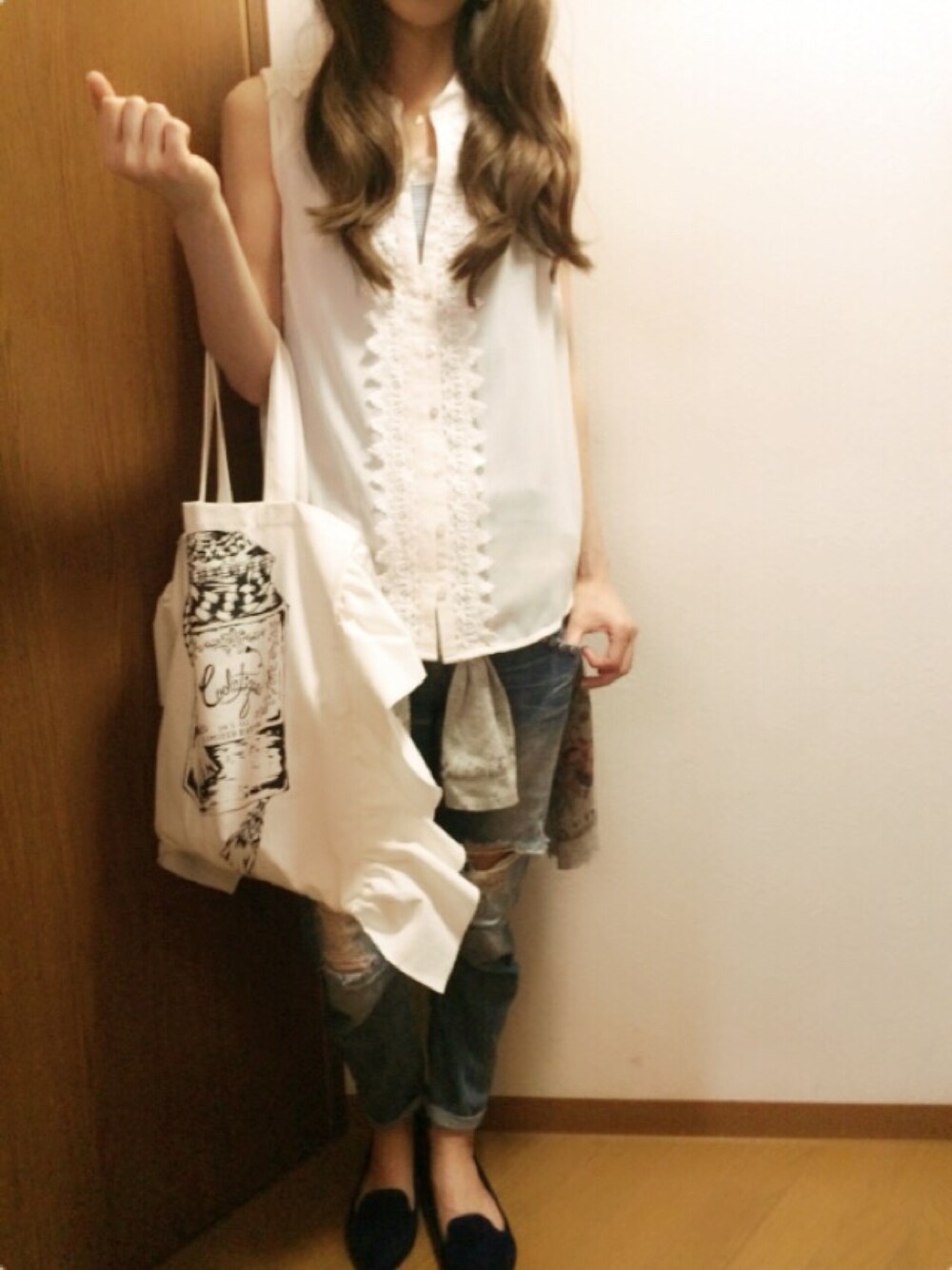 お気に入りのレースがゴリゴリのブラウスを甘辛コーデでラフに♡ しかしバーゲン毎年早くなってない?早すぎて夏が終わった錯覚に陥ってるなう(›´ω`‹ ) でも今年の夏は遊ぶでー!