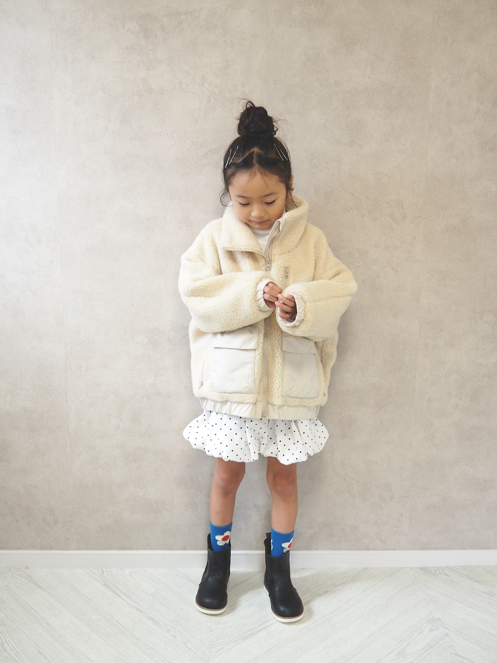 autumn style.🤍◯⚪︎。 ________________________________ ◻︎エアサーマルボアブルゾン 491287 ◻︎フライスカラータートル 591843 ◻︎ドットバルーンミニスカート 601914 size:120 【6y / 118cm / 20kg】 軽くてあたたかいエアサーマルシリーズのボアversion🤍'' ビックポケットが可愛くて丈感もちょうどいい✨ どんなボトムにも合わせやすいよ♡ そして今期大人気のドットシリーズ⚪️⚫️‘‘ バルーンスカートならちいさいこも取り入れやすい♡ママとお揃い出来るアイテム✨