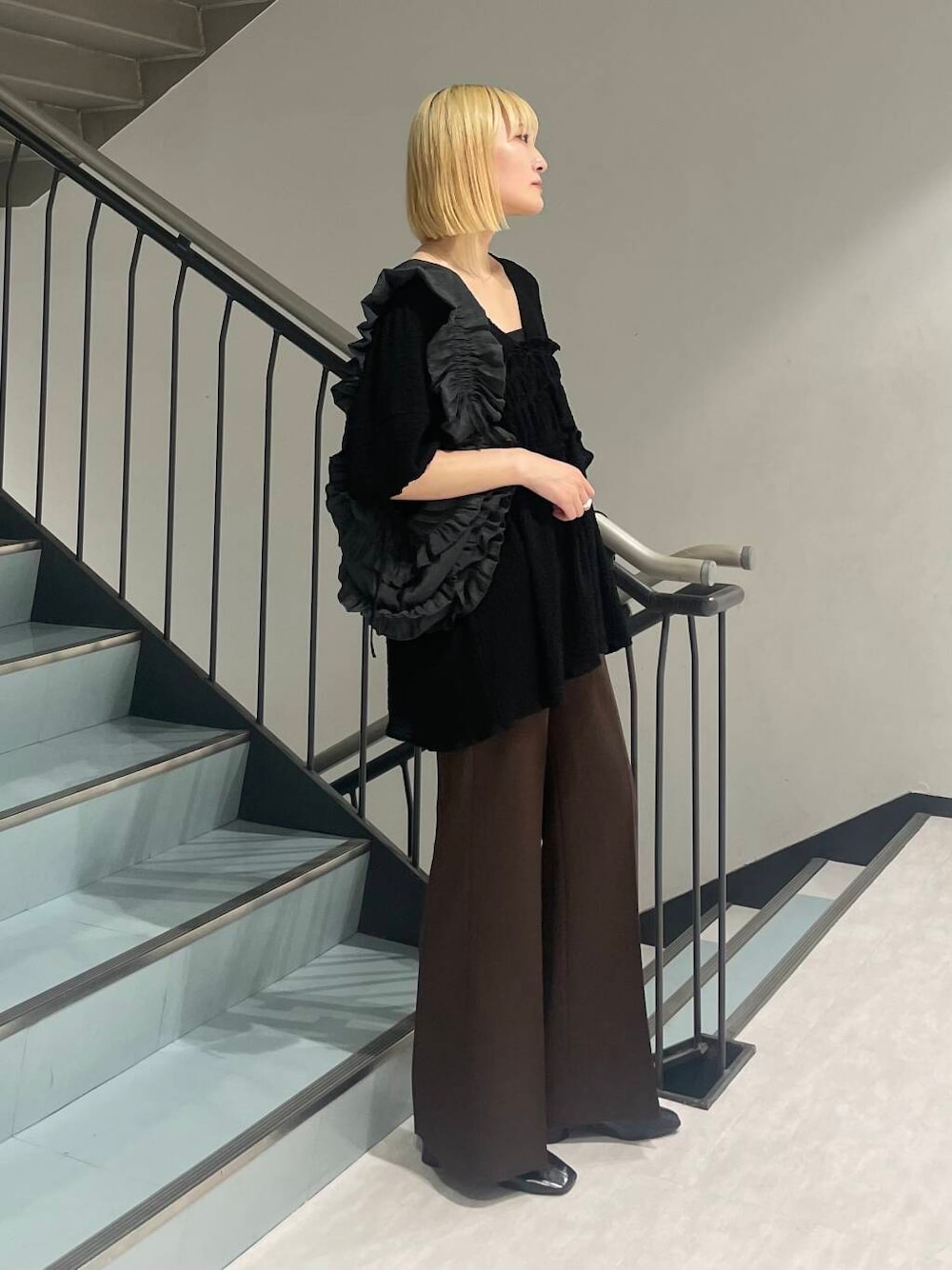 フロントリボンチュニックは着てみると ボリュームすぎないストンと落ちるシルエット✨ あえて綺麗なパンツと合わせてクールな大人めコーデにしてみました😊🫶🏻