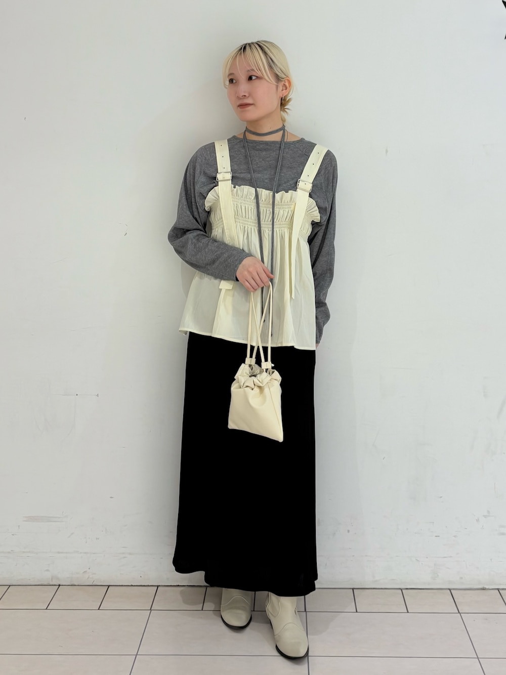 モノトーンで合わせて綺麗めに合わせてみました ビスチェは落ち感のある素材なので着膨れせずレイヤードスタイルがつくれます🥹✨ 春あったら嬉しいアイテム🫶🏻