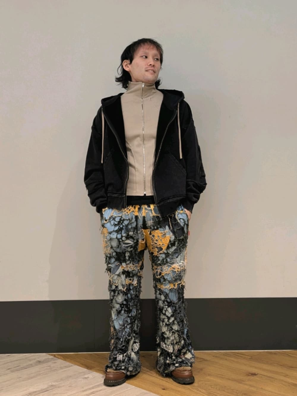 ミヤザキ(LHP ルミネエスト新宿店)のパーカー「DankeSchon/ダンケシェーン/CHEMICAL SWEAT PINTACK ZIP HOODIE」を使ったコーディネート
