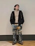 ジップタイトシャツをインナーにしてモードな雰囲気を醸します。