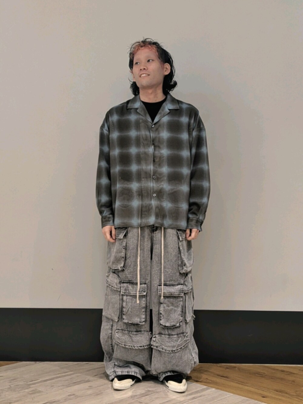 DANKE SCHON テンセルデニムカーゴがケミカルウォッシュver.で登場。 軽量で通気性もあるため夏まで重宝するパンツになってます。 オンブレチェックのメッシュシャツはグレートーンに取り入れやすいカラーです。