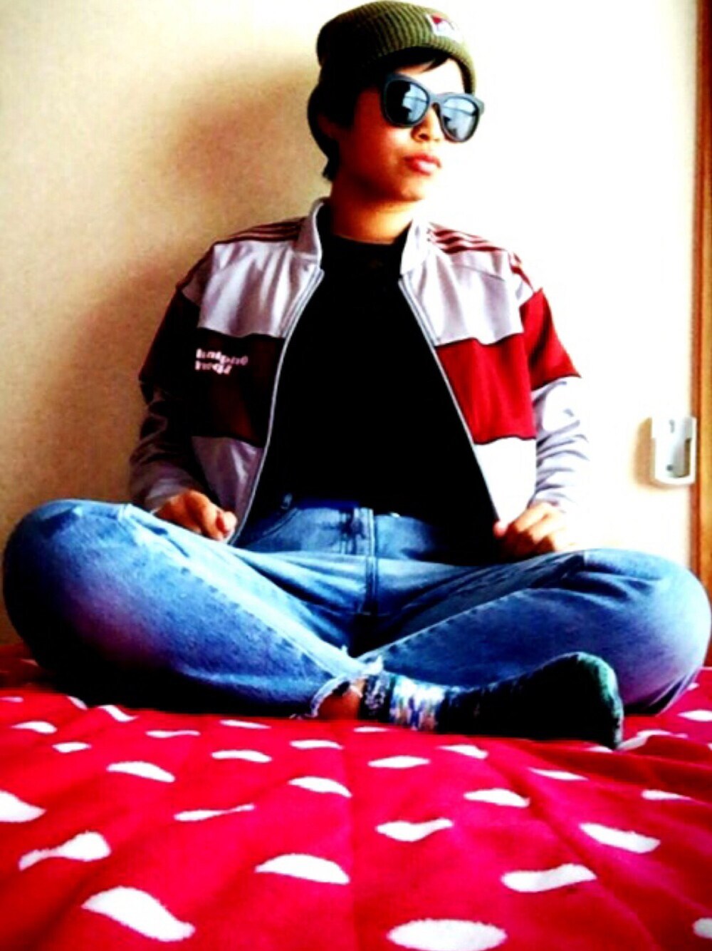 👽ラフスタイル👽 adidasのoriginal sportsは父からもらいました(・∀・)ニヤニヤお気に入り🤘🏿 ジーンズはフリーマーケットで買って裾を自分でカットして流行りの切りっぱなしにしてみました👆🏿