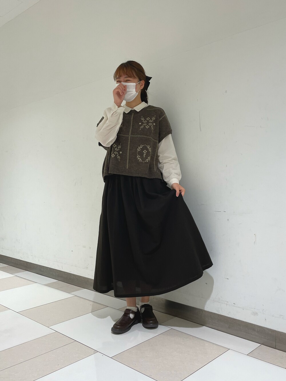 uuummmeのベスト「ウール混モチーフ刺繍ベスト」を使ったコーディネート