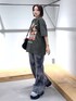 Smokey look🌫 【トップス】 カーキとオレンジの色合いがオシャレ見えするTシャツです! レースがドッキングされているので、LIMのTシャツだけど少しガーリーに着れちゃいます💖 【ボトムス】 PAGEBOYの定番細見えデニム!✨ 152cmでぴったりサイズは25inchですが、26inchで厚底と合わせると脚長効果抜群です🙆🏻♀️