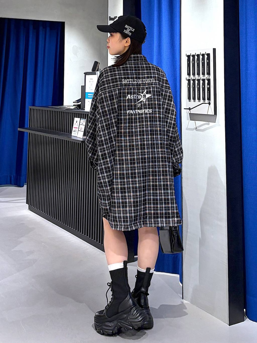 【トップス】 BATTLE OF TOKYOコラボのチェックシャツ!♡ 後ろの刺繍ロゴが凝ってる感じで高みえする✨️ 丈がかなり長めなのでショートパンツと合わせるとワンピース風に着れるし、重ね着もしやすそうです! 【キャップ】 ASTRO9のロゴが大きく入ったキャップ🌟 サイドにも刺繍が入っててどこから見ても可愛い! 大きさは後ろで調節できますよ!